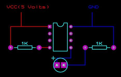 يمتاز المتحكم المايكروي PIC12F675 بصغر حجمه (8pin) و رخص سعره و احتوائه على مذبذب داخلي (Internal Oscillator) إضافة إلى مجموعة من المدخلات التماثلية. يكون ربط الدائرة كما في الشكل أدناه