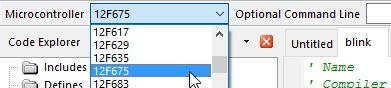 يمكنك الاستعانة بالكثير من الامثلة المتوفرة مع بيئة التطوير PBP في المجلد Examples, لكننا سنقوم بكتابة البرنامج لمناقشة الخطوات و فهم طريقة عمله. نقوم في البداية باختيار المتحكم المطلوب العمل معه.